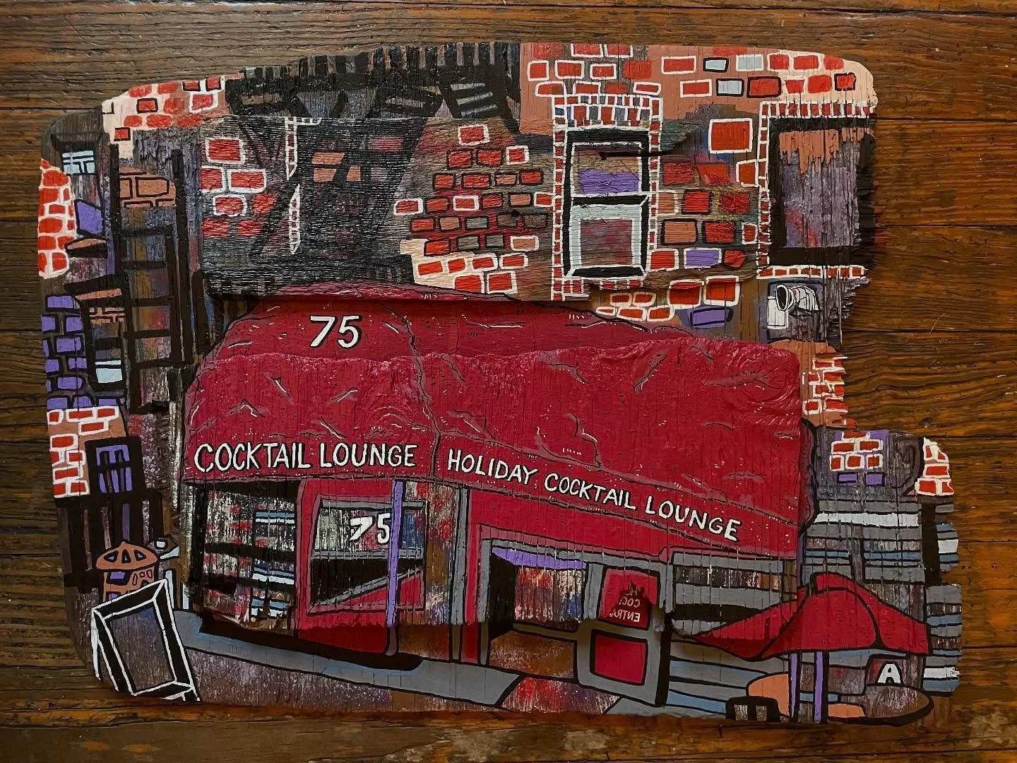 Popping color fields, transfigured geometry, masked alphabets and common forms collide in compositions on canvas, paper, wood and found material. Much of Sewell’s work offers an homage to daily life of New York City, it’s clattering motion, passion and color. Keeping pace with the rhythmic pulse of the urban experience, you find hidden water towers, row houses, references to jazz and r&b music, coffee cups.