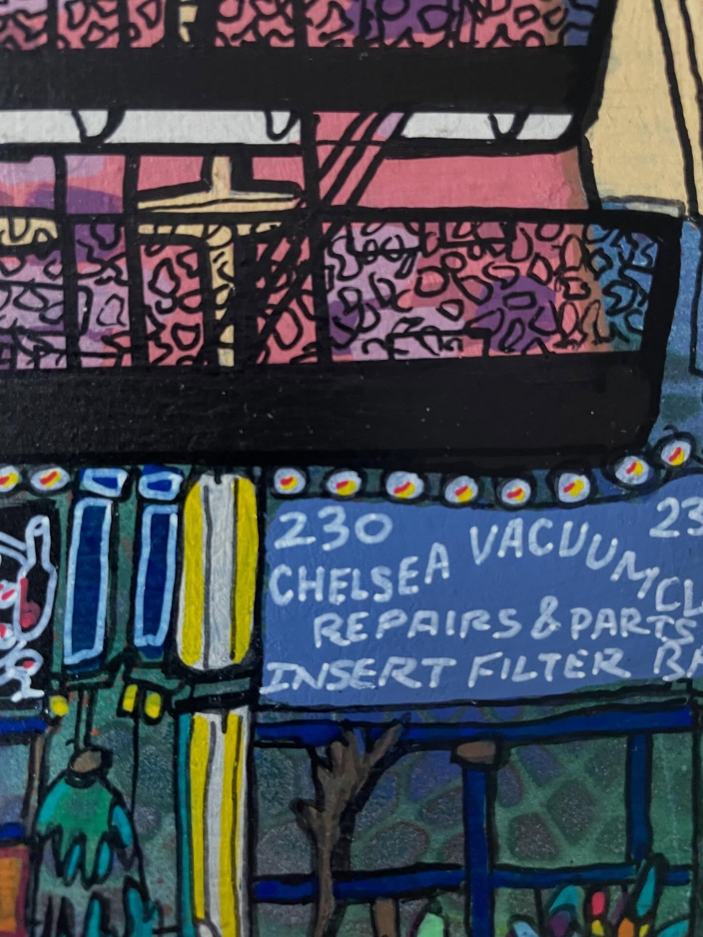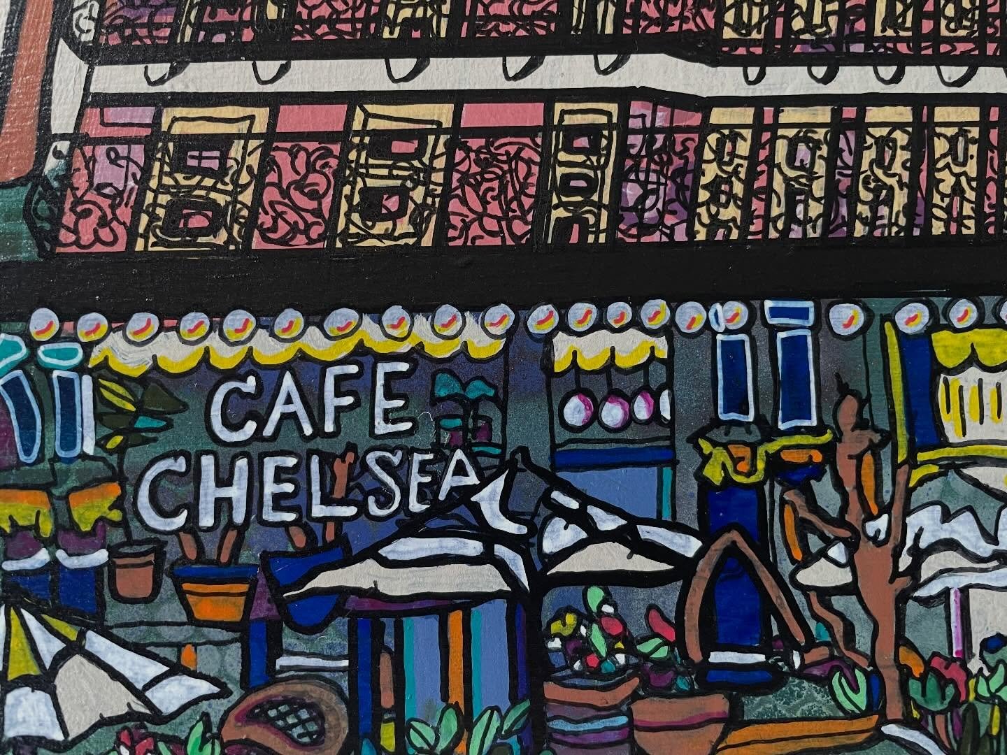 George Sewell is a self-taught artist who has been living and working in Manhattan for more than 50 years. He arrived in NYC from London in the early 70’s and became enamored of the city’s world-class urban chaos. Strongly influenced by the street scenes in lower Manhattan, he first voiced his creativity through graffiti art. But soon, Sewell’s art moved away from the street and into the studio, translating the vibrant styles of the streets into richly visual equivalents.